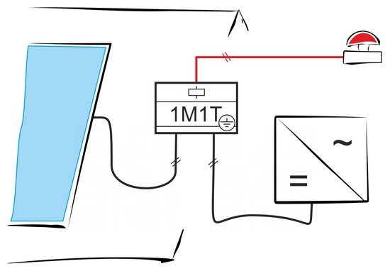 1 string zárlatvédelme távlekapcsolással és az inverter - adott MPPT bemenetének - túlfeszültség-védelme akár a napelemekhez közel kültéren, akár az épület belépési pontja közelében