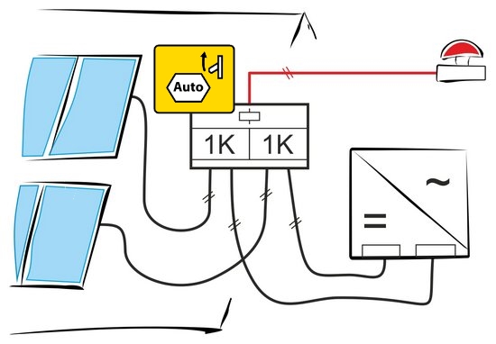 2 független string távlekapcsolása és ac oldali feszültségkimaradás utáni automatikus visszakapcsolására és az inverter adott MPPT bemeneteinek túlfeszültség védelme akár a napelemekhez közel kültéren, akár az épület belépési pontja közelében
